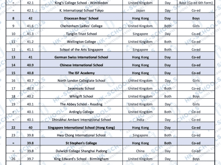 Unofficial Top 10 IB Schools in Hong Kong (based on average IBDP scores)