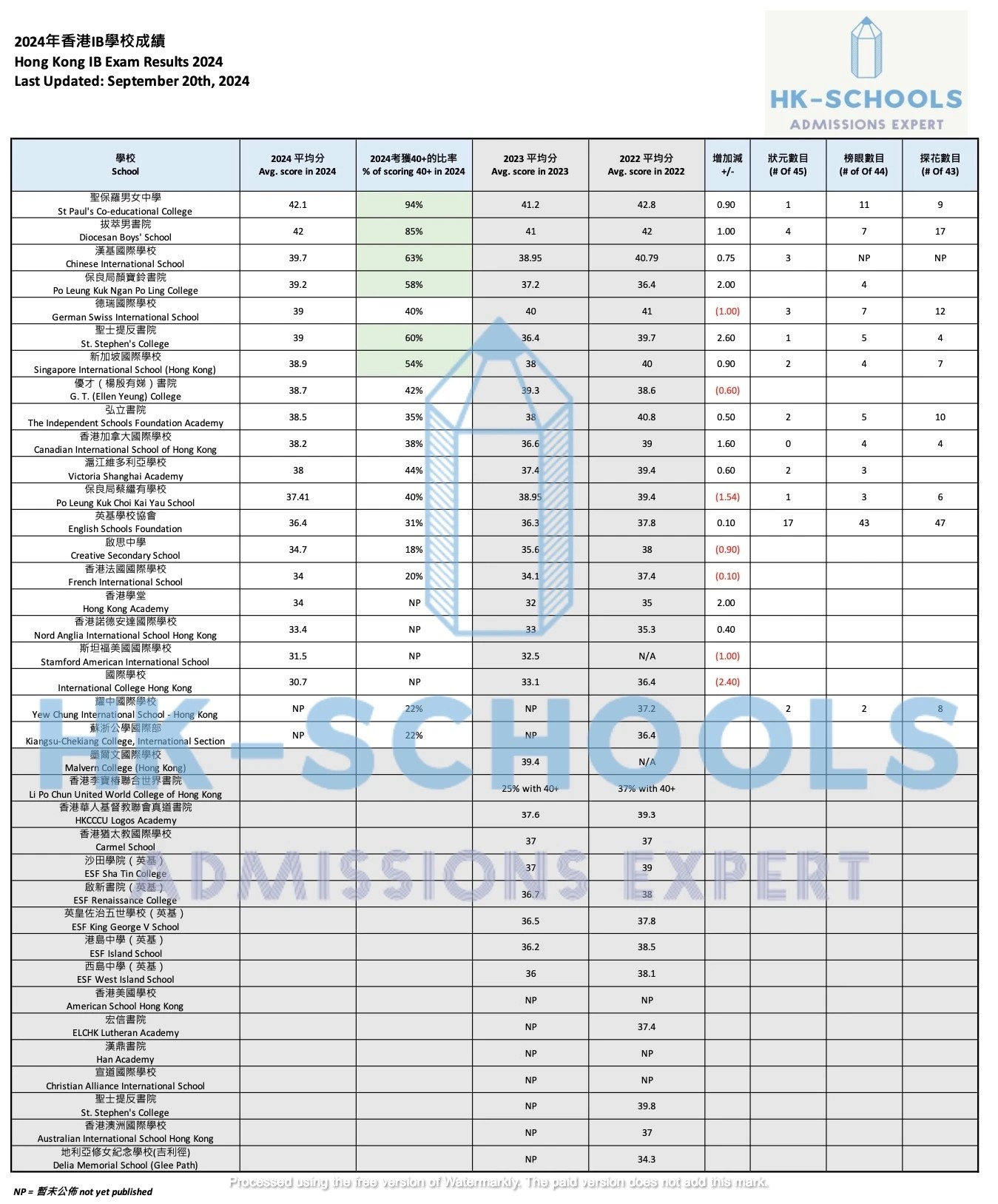 2024 Hong Kong IB Results (Last Update September 20th, 2024)