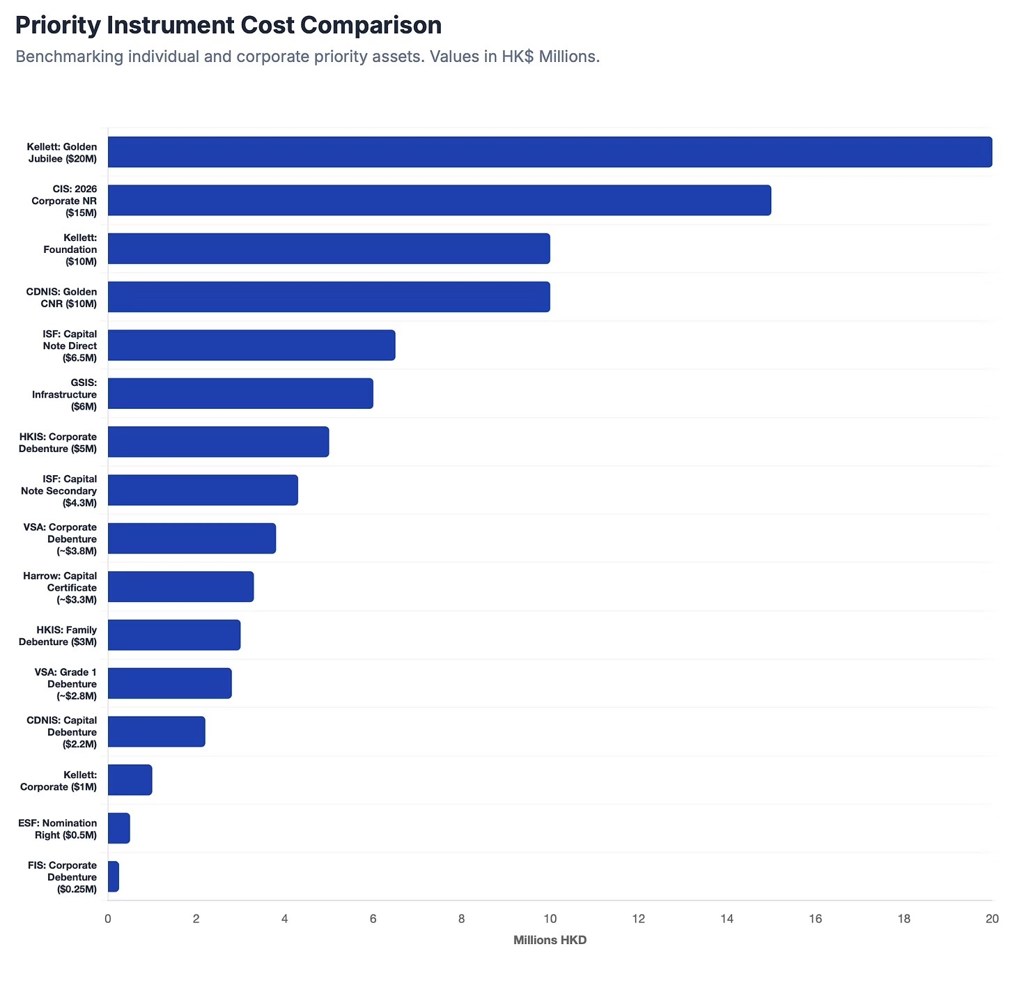 Grade 1 Debenture: ~HK$2,800,000 (Targets Y1 intake).
