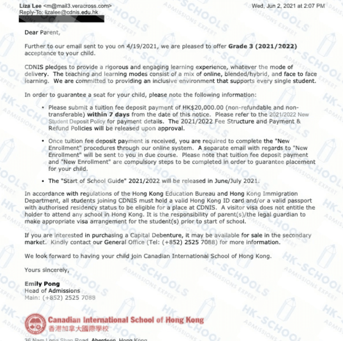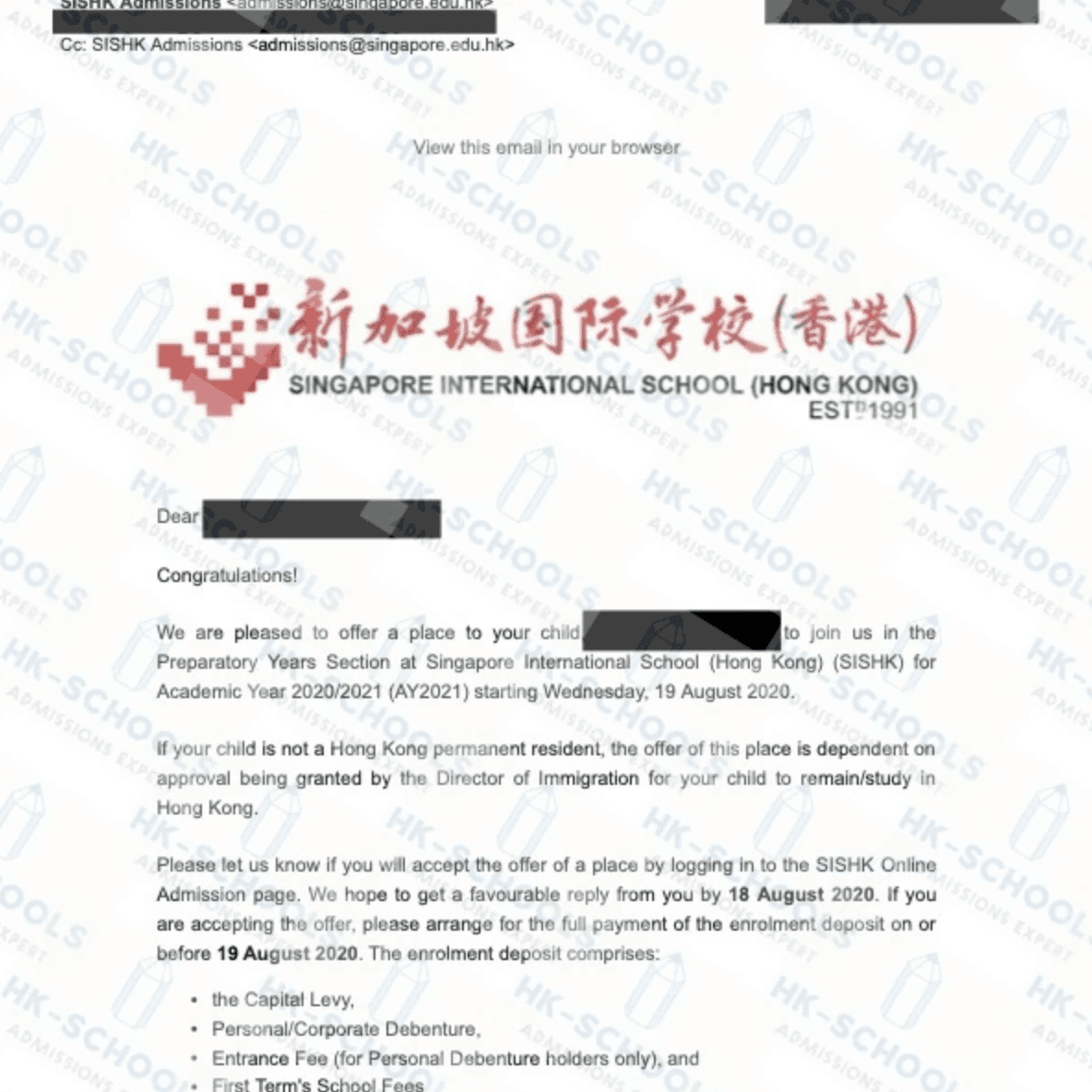 2021年,對學生和家長而言都是充滿挑戰的一年。過去一年,HK-Schools.com 很高興能協助學生成功入讀多所競爭激烈的學校,例如弘立幼稚園(Independent Schools Foundation Pre-School, ISF)、弘立書院(Independent Schools Foundation Academy, ISF)、滬江維多利亞學校(Victoria Shanghai Academy, VSA)、香港墨爾文國際學校(Malvern College Hong Kong)、啟新書院(Renaissance College, ESF)、加拿大國際學校(Canadian International School, CDNIS)、保良局蔡繼有學校、新加坡國際學校、南島中學、漢鼎書院、諾德安達國際學校、Christian Alliance International School(CAIS)、法國國際學校(French International School, FIS)、Kellett School,以及更多學校。