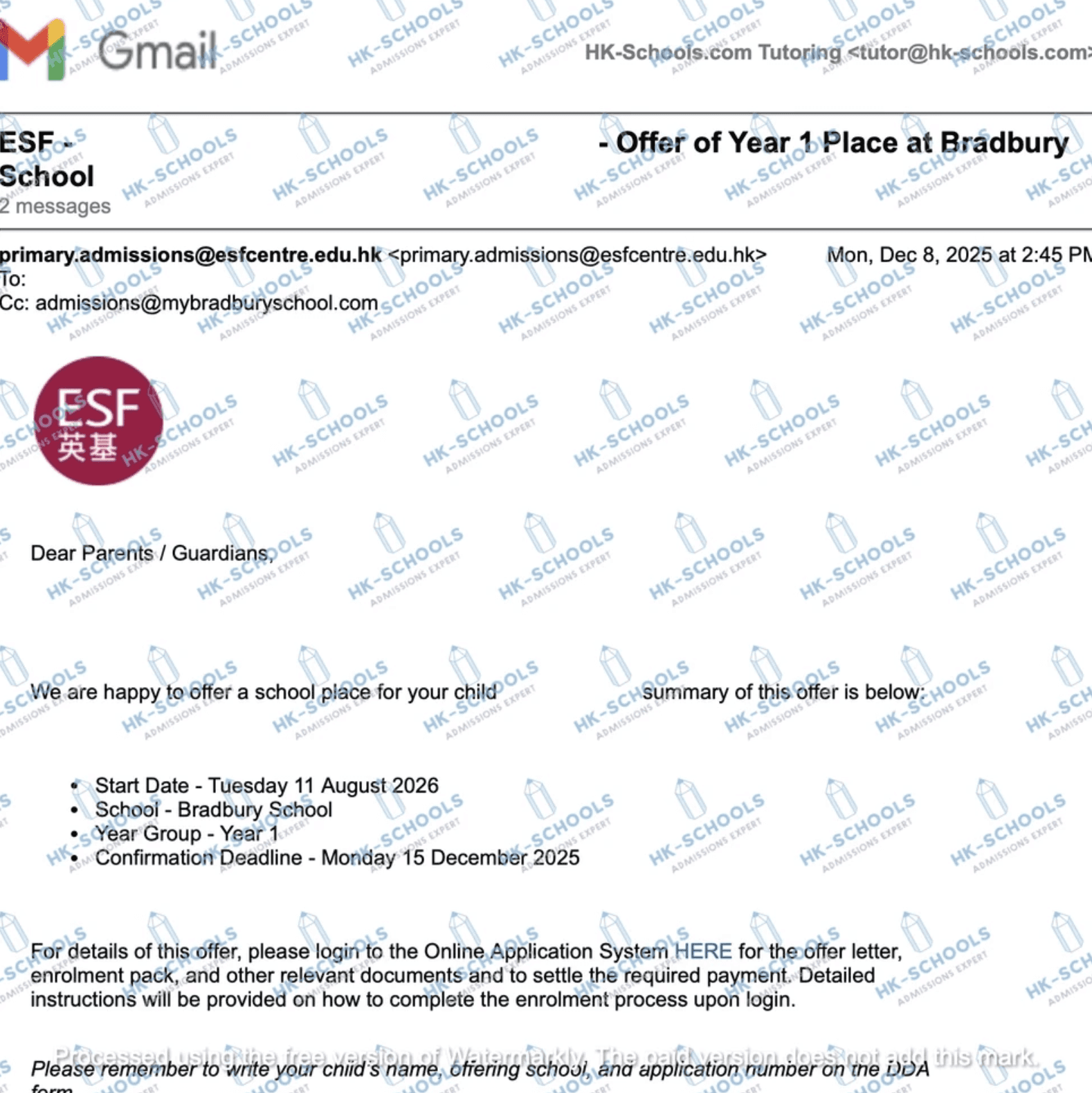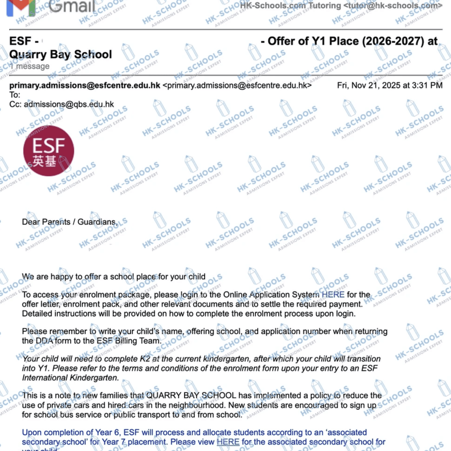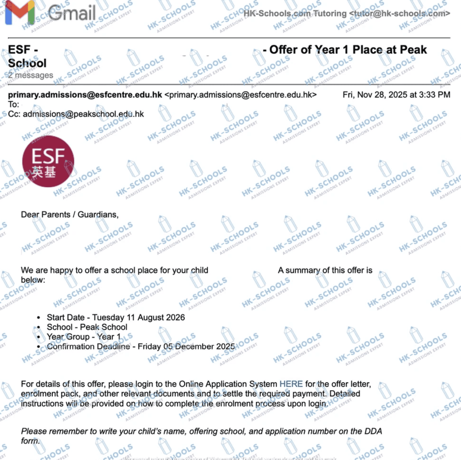 香港國際學校 - 預備班(2個錄取)、預備班2、一年級、三年級