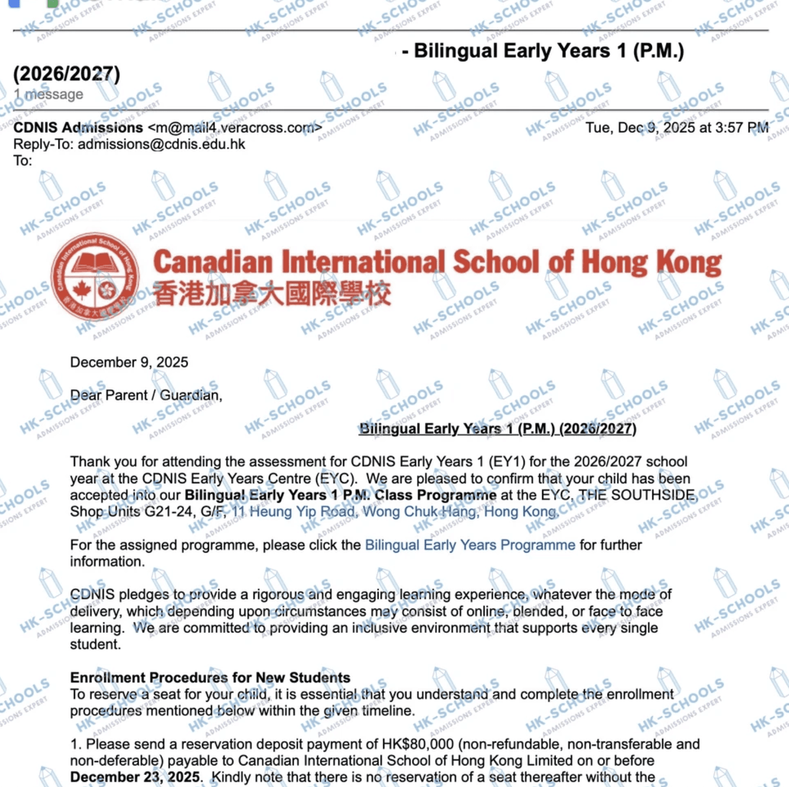 加拿大國際學校 - EY1(2個錄取)、EY2、預備班、六年級)