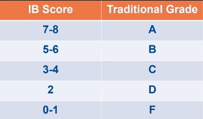 學生將修讀部分高級程度(HL)科目及部分標準程度(SL)科目。HL 與 SL 課程的範圍不同,但均按相同的評分標準評核;高級程度要求學生展現更廣泛的知識、理解及技能。每名學生至少修讀三科(但不多於四科)高級程度科目,其餘則為標準程度科目。 評分與成績
