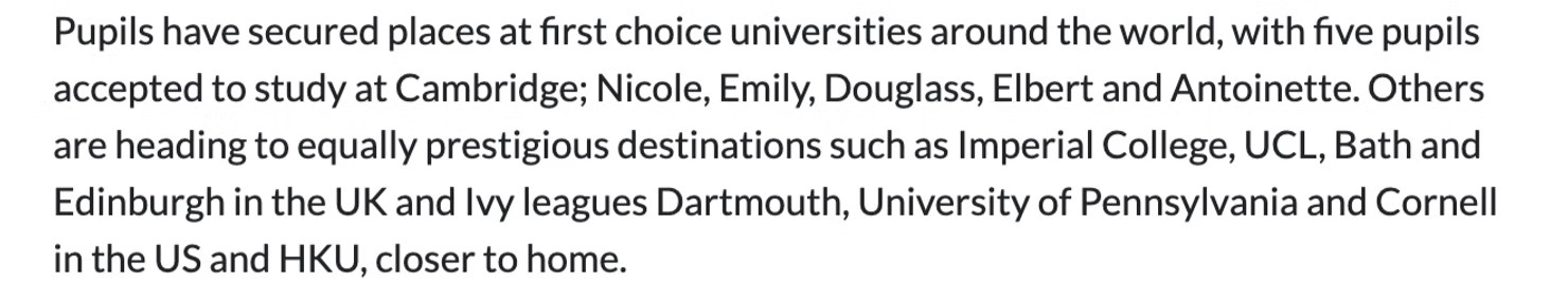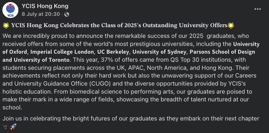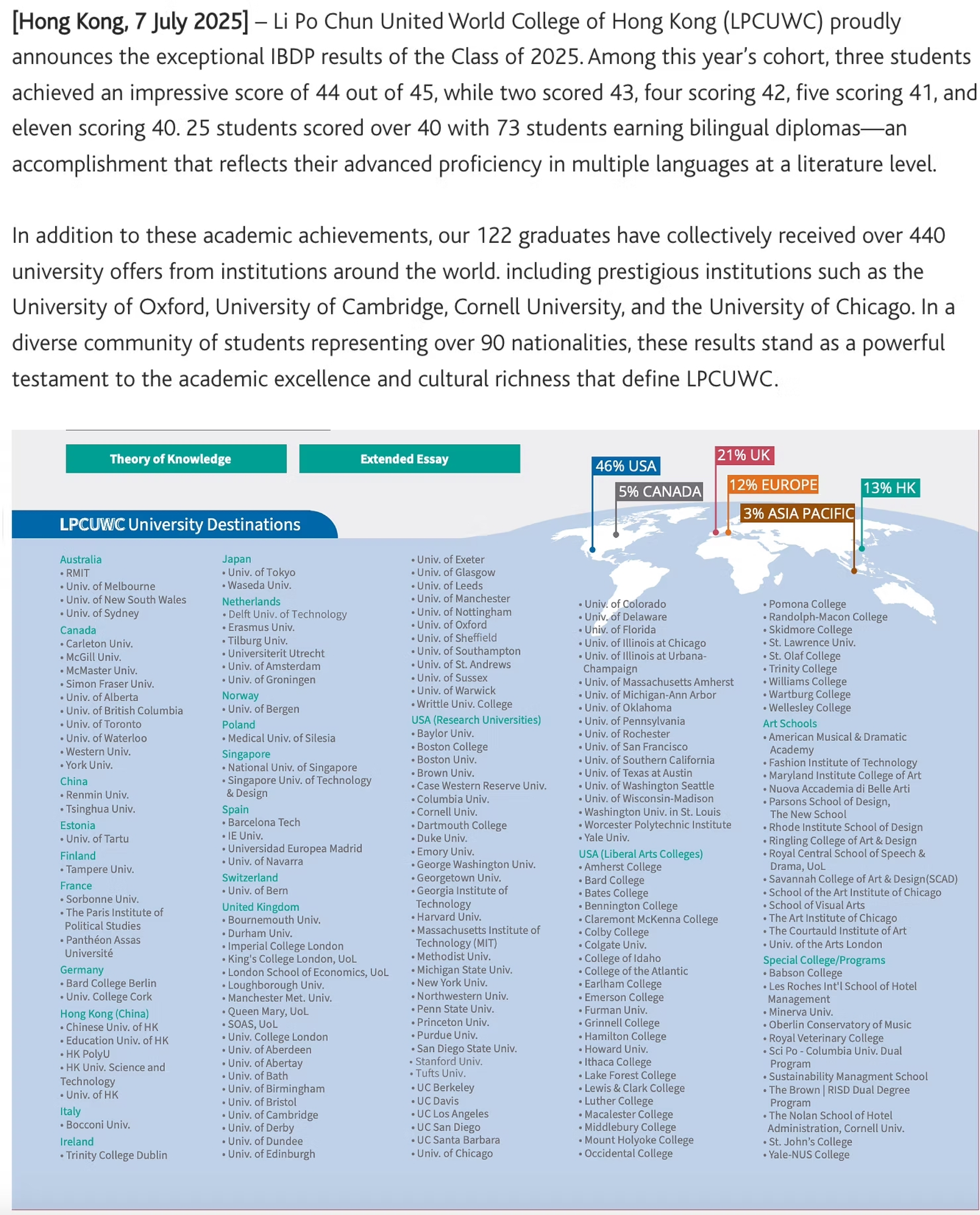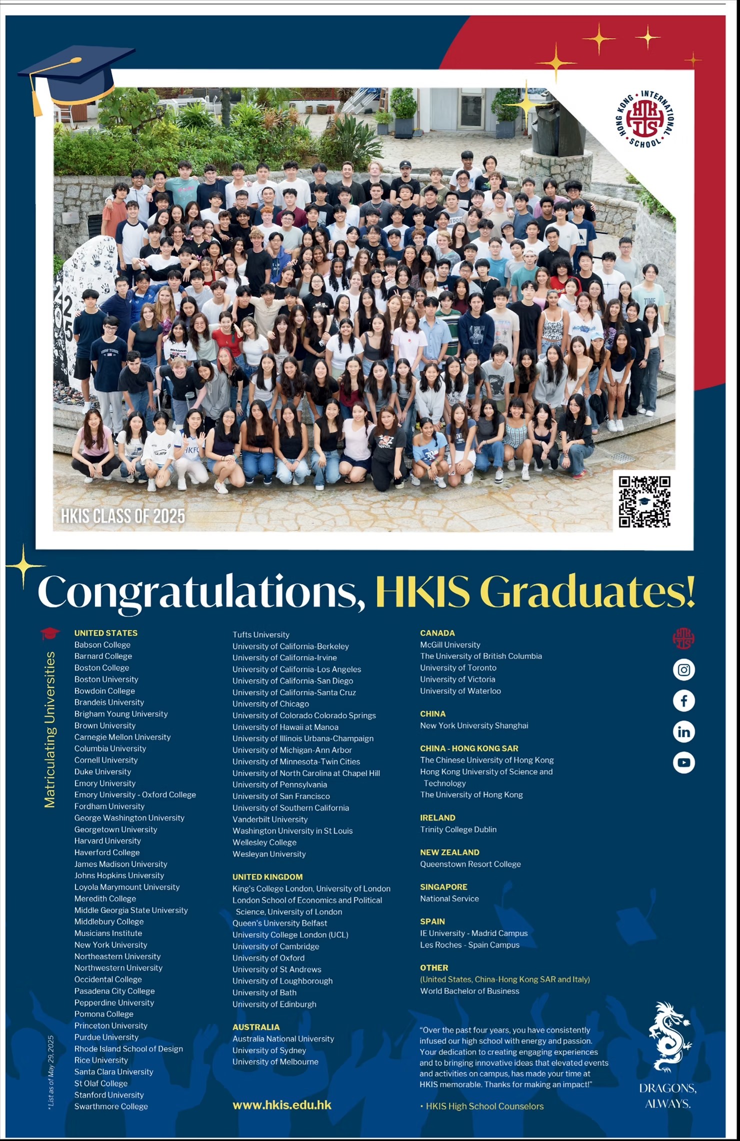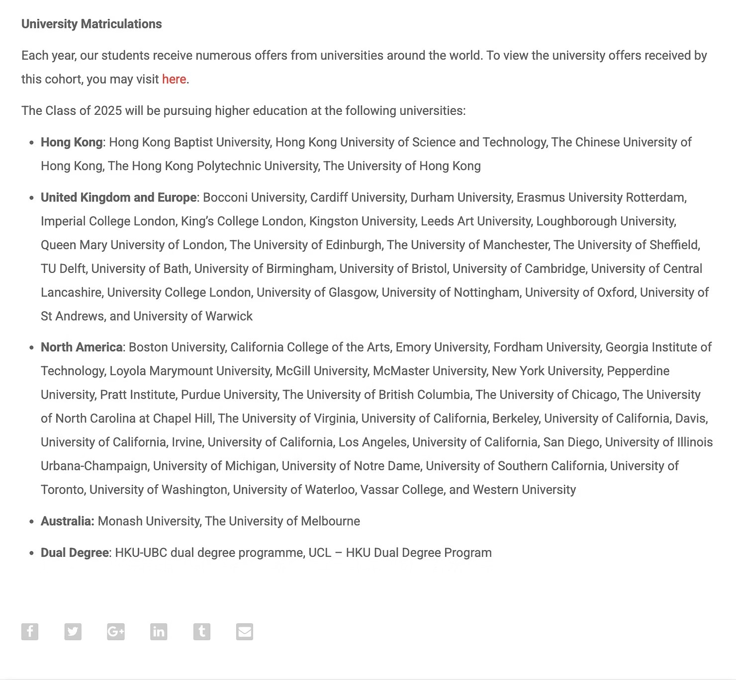 香港國際學校 2025 年大學錄取情況(2025 年 7 月 15 日更新)