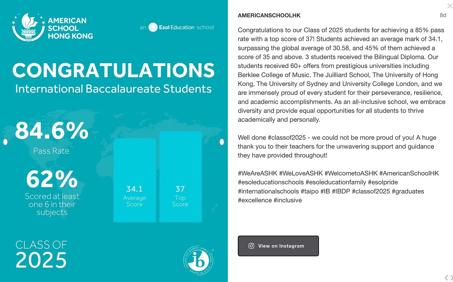2025年 IB 平均分數:39,47% 取得 40 分或以上;11 個雙語文憑